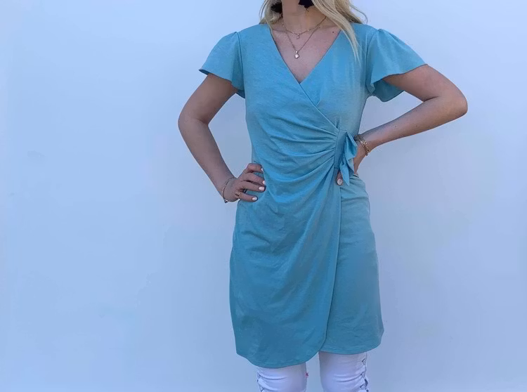 Annika turkos I lager. 300 kr Storlek S/M M/L L/XL Lägg i korgen Turkos omlottklänningKvalité: 94% Polyester 6% Elastan