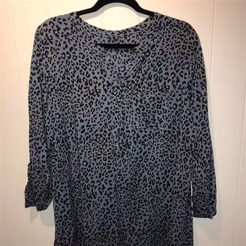 Natalie blå I lager. 300 kr Storlek One Size Lägg i korgen Blå leopard skjortaKvalité: 95% Bomull 5% Elastan
